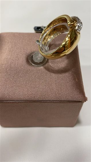 ANELLO SALVINI IN ORO GIALLO KT 18 CON PAVè DI DIAMANTI TAGLIO BRILLANTE KT 0.14 H. MISURA ANELLO 14.PESO ANELLO 6.90 GR.