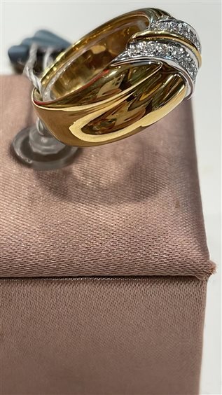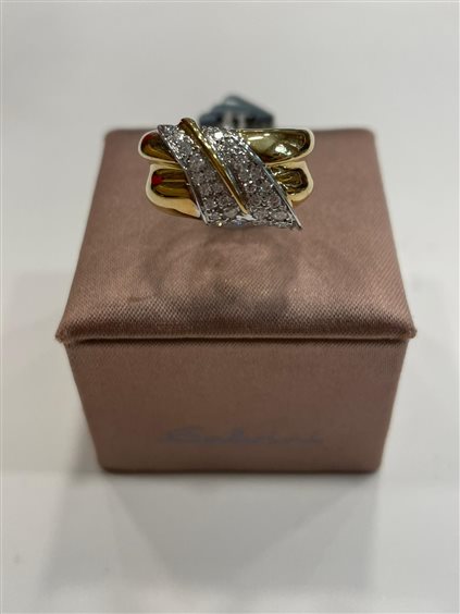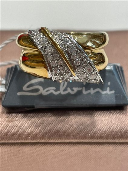 ANELLO SALVINI IN ORO GIALLO KT 18 CON PAVè DI DIAMANTI TAGLIO BRILLANTE KT 0.42. MISURA ANELLO 14. PESO 8 GR.