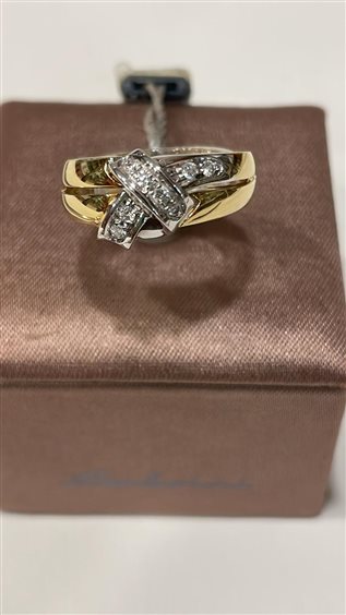 ANELLO SALVINI IN ORO GIALLO KT 18 CON PAVè DI DIAMANTI TAGLIO BRILLANTE KT 0.13 H. MISURA ANELLO 13. PESO ANELLO 5.60 GR.