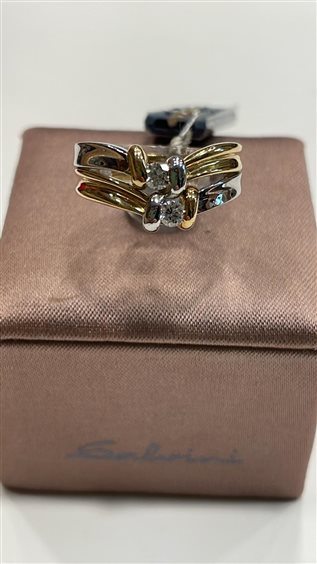 ANELLO SALVINI IN ORO GIALLO KT 18 E PLATINO CON PAVè DI DIAMANTI TAGLIO BRILLANTE KT 0.20 H. MISURA ANELLO 12. PESO 7.70 GR