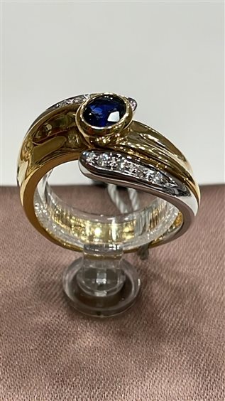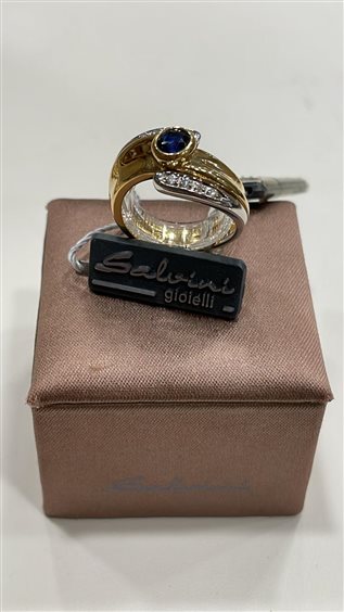 ANELLO SALVINI IN ORO GIALLO KT 18 CON ZAFFIRO KT 0.47 E BRILLANTI KT 0.07H. MISURA ANELLO 14. PESO ANELLO 7.30 GR.