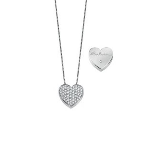 CIONDOLO A CUORE CON CATENINA ORO BIANCO ,DIAMANTI INCASSATI A PAVE'CT0.71 COLORE G