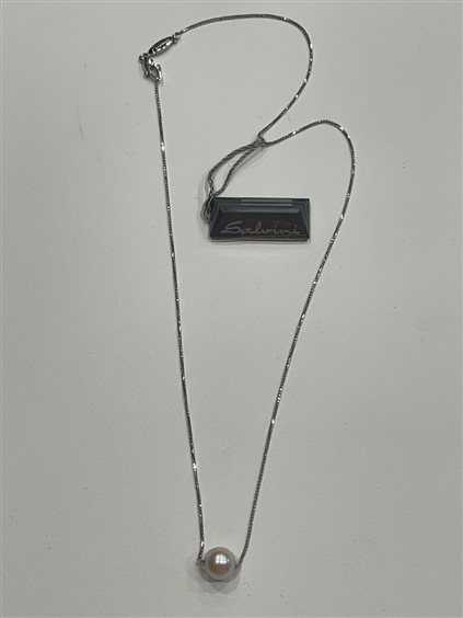 COLLANA SALVINI (MIKAWA) IN ORO BIANCO KT 18 CON PERLA PASSANTE ACQUA SALATA MM 8/8.5.