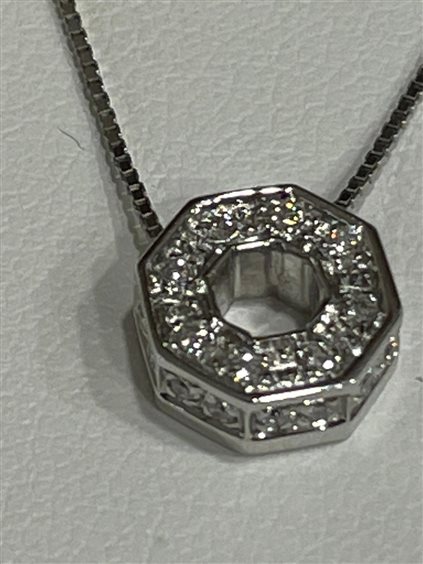 Collana Salvini donna in oro bianco kt 18 con pendente a forma ottagonale con brillanti kt 0.17 H. Misura 45 cm.