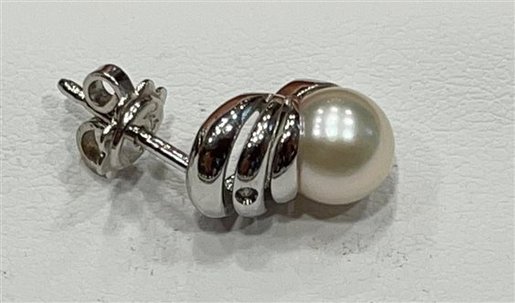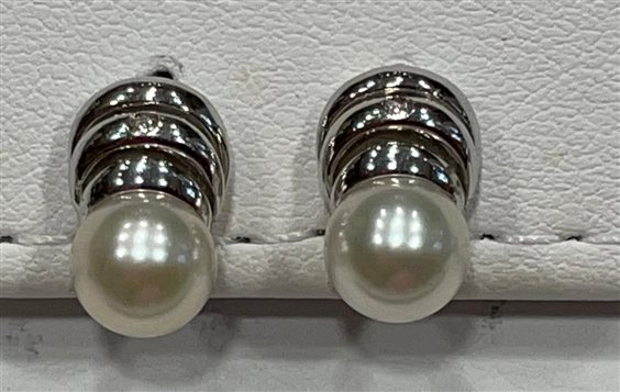 ORECCHINI SALVINI IN ORO BIANCO KT 18 CON PERLE ACQUA SALATA MM 7/7.5 CON BRILLANTI KT 0.01 H.