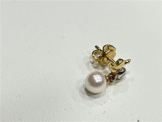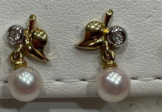 ORECCHINI MIKAWA (SALVINI CASA DAMIANI) IN ORO GIALLO E BIANCO KT 18 CON PERLE ACQUA SALATA MM 6/6.5 CON BRILLANTI KT 0.02 H.