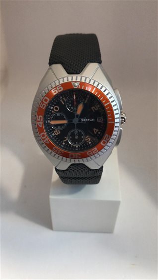 Resistenza all'acqua:100 m (10 ATM) Stile: Subacqueo Modello: SECTOR 185 Reparto: Uomo Movimento: Al Quarzo Colore della cassa :Argento Colore del quadrante: Nero Caratteristiche :Indicatore della data Colore del cinturino: Nero Materiale della cassa :Alluminio