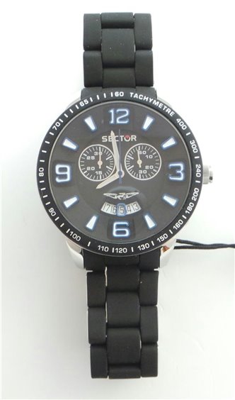 Orologio Sector da uomo, cassa e bracciale in acciaio ricoperto da gomma soft touch, al tocco vellutata. Particolarissimo quadrante in 3D, cronografo con datario centrale. Resistente all'acqua 100 m. chiusura in acciaio con sicura.
