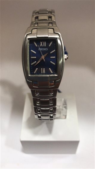OROLOGIO SEIKO DONNA CASSA E CINTURINO IN ACCIAIO QUADRANTE RETTANGOLARE FONDO BLU SOLO TEMPO CHIUSURA DEPLOYANTE.