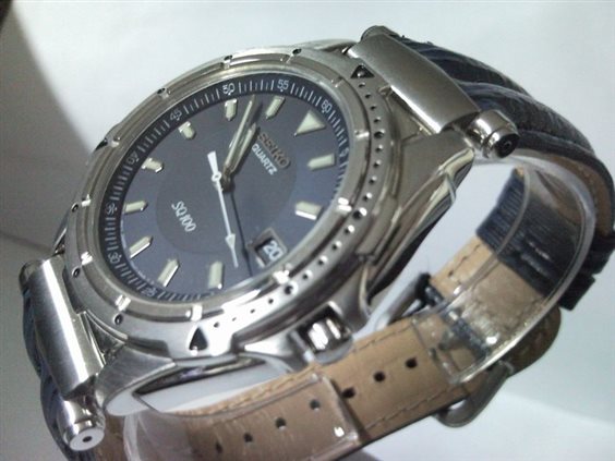 OROLOGIO SEIKO UOMO-CASSA ACCIAIO SATINATO MM.40-VETRO ZAFFIRO-CINTURINO PELLE-MOVIMENTO QUARTZ SOLO TEMPO-WATER RESISTANT M.100