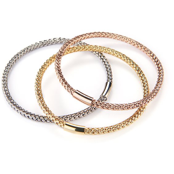 Tris Bracciale rigidi fin dorata, rosè e rodio d 7