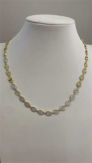 COLLANA SOVRANI DONNA IN OTTONE PLACCATO ORO GIALLO CON ZIRCONI BIANCHI, CHIUSURA MOSCHETTONE; MISURA COLLANA 42 CM.