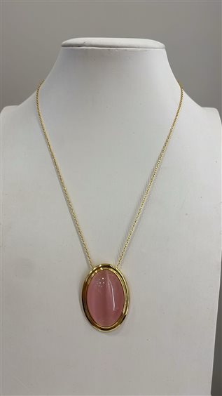 COLLANA SOVRANI DONNA IN OTTONE PLACCATO ORO GIALLO CON PENDNETE IN PIETRA SINTETICA ROSA, CHIUSURA A MOSCHETTONE E MISURA REGOLABILE.