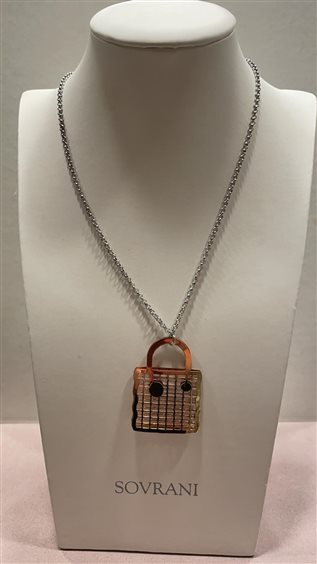 COLLANA SOVRANI IN ARGENTO CON PENDENTE BORSETTA IN ARGENTO ROSA.