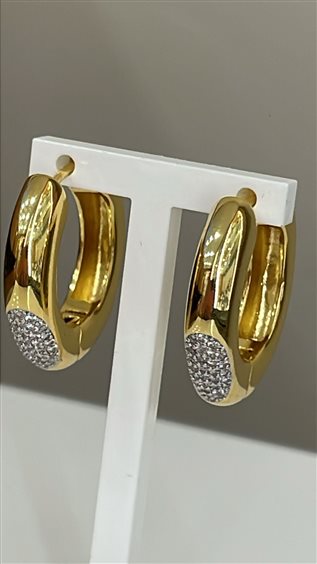 ORECCHINI SOVRANI IN OTTONE PLACCATO ORO GIALLO CON PAVE' IN ZIRCONI BIANCHI, DIAMETRO 2.5 CM.