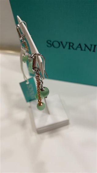 ORECCHINI SOVRANI PENDENTI IN OTTONE E PIETRE COLORATE.