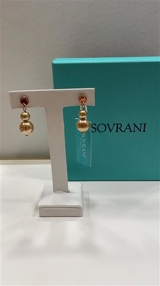 ORECCHINI SOVRANI PENDENTI IN OTTONE E PERLE BEIGE.