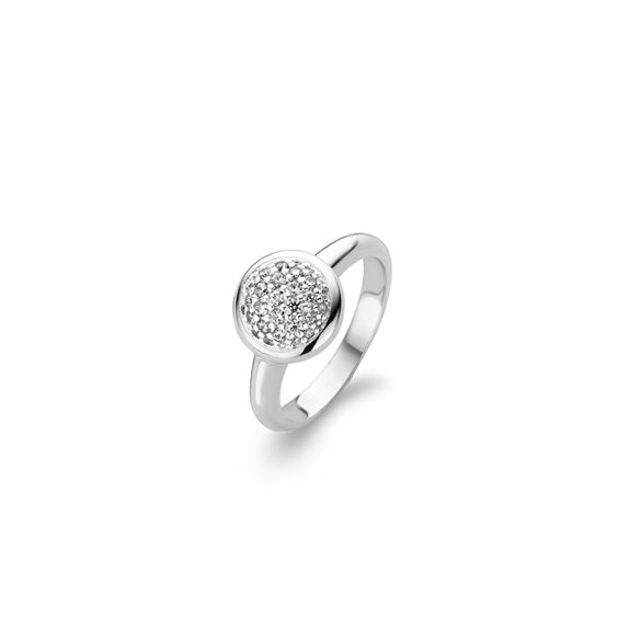 Questo anello TI SENTO - Milano è in argento sterling rodiato. La superficie liscia abbraccia un pavé di zirconi. Il modello si può abbinare ad altri anelli sullo stesso dito, sempre della linea TI SENTO Mix & Match, per creare un gioiello unico.