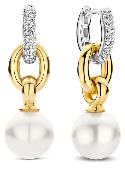 Gli orecchini a goccia con perle placcate oro 78016YP di TI SENTO sono un'audace fusione di eleganza classica e modernità. Realizzati in argento sterling 925 di prima qualità, questi orecchini sono caratterizzati da maglie interconnesse placcate in oro giallo, le cui forme lisce e scultoree creano una dichiarazione d'effetto. Sospesi da cerchi di zirconi incastonati, catturano la luce a ogni movimento, aggiungendo il giusto tocco di scintillio. Una luminosa perla bianca fa da sfondo al design, donando una raffinatezza senza tempo con un tocco contemporaneo. Il gioco di texture e toni fa di questi orecchini un compagno ideale sia per lo chic quotidiano che per il glamour serale. Privi di nichel e ipoallergenici, assicurano un comfort lussuoso a ogni indosso. Lasciate che queste perle di rilievo ondeggino a ogni vostro passo, trasmettendo sicurezza, grazia e un fascino innegabile.