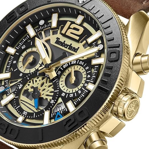 L'elegante uomo della marca Timberland attira l'attenzione e può essere indossato con qualsiasi outfit L'elegante cinturino in pelle marrone con fibbia ad ardiglione si adatta piacevolmente al polso Il quadrante nero con le lancette dorate è protetto da un vetro minerale di alta qualità La cassa in acciaio inossidabile nera ha un diametro di 44 mm L'orologio ha una resistenza all'acqua di 5 bar (adatto per l'uso quotidiano, come ad esempio B. bagno, doccia o lavaggio delle mani)