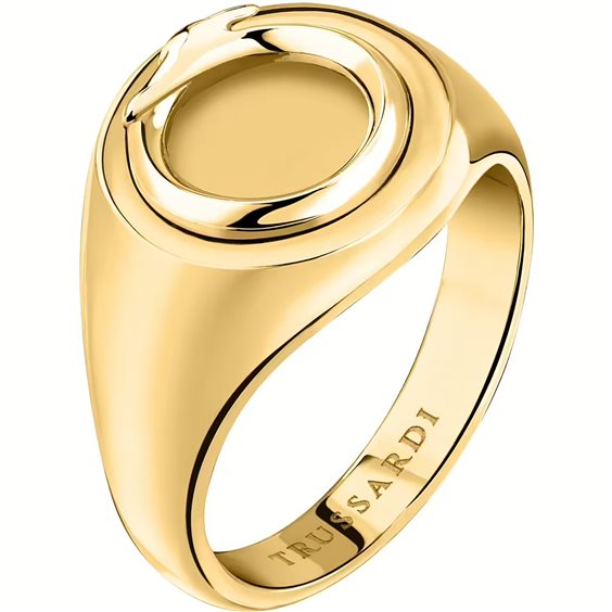 Prodotto: anello donna gioielli Trussardi T-Heritage Anello da donna di Trussardi della collezione T-Heritage. Gioiello in acciaio di colore oro giallo. Misura gioiello: 16 Questo articolo verrà spedito con Scatola Originale Trussardi se prevista dal brand