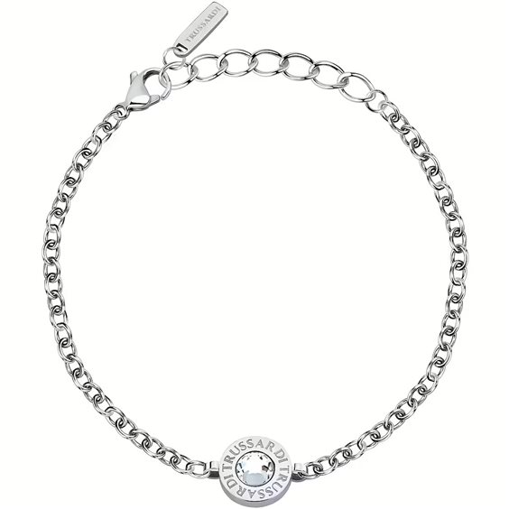 Prodotto: bracciale donna gioielli Trussardi T-Logo TJAXC116 Bracciale da donna del brand Trussardi della collezione T-Logo. Bracciale di colore argento con misura: 16+3 cm. Bracciale in acciaio e cristalli. La referenza è: TJAXC116 Questo articolo verrà spedito con Scatola Originale Trussardi se prevista dal brand