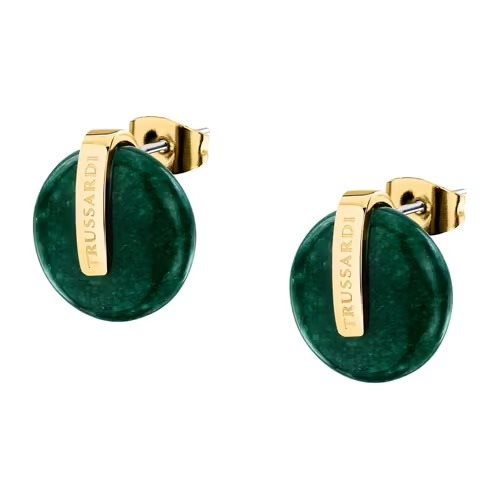 ORECCHINI TRUSSARDI T-ROUND - TJAYF12 - Genere : Donna, Misura: 14, Colore: Oro, Kronoshop experience: Fashion, Modello: Lobo, Materiale: Acciaio, Gemme, Peso: 3,600 gr, Diametro Perle: ∅1.3cm mm, Pietra: Agata, Colore pietra: Verde, Certificato di autenticità: Sì, Confezione: Originale Trussardi