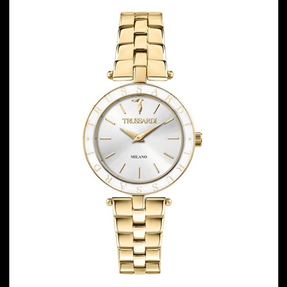 Orologio Trussardi solo Tempo Da Donna Di Trussardi Della Collezione T-Shiny. Modello Con Cassa Del Diametro Di 34Mm In Acciaio Lucido E Vetro Minerale. Orologio Con Bracciale In Metallo Di Colore Oro Giallo E Chiusura Deployment Con Pulsanti. Modello Con Movimento Al Quarzo A 2H E La Resistenza All'Acqua È Di 5 Atm.
