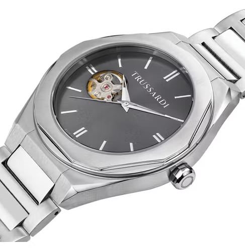 Prodotto: orologio multifunzione uomo Trussardi Big wrist R2423156002 Orologio automatico da uomo di Trussardi della collezione big wrist. Orologio realizzato in acciaio argentato e vetro minerale con trattamento zaffiro. Orologio con cassa di 42mm. La resistenza all'acqua è di 5 atm. La referenza è R2423156002 Questo multifunzione verrà spedito con Scatola Originale Trussardi
