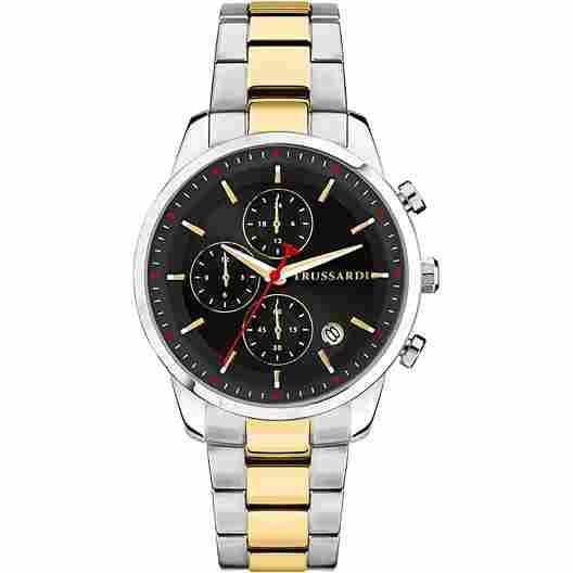 Prodotto: orologio multifunzione uomo Trussardi T- Bridge R2453171001 Orologio del brand Trussardi da uomo della collezione T- Bridge. L'orologio è tondo e in acciaio. Orologio multifunzione di colore oro e acciaio con cassa di 41 mm e vetro minerale. Resistenza all'acqua: 5 ATM. La referenza è: R2453171001 Questo articolo verrà spedito con Scatola Originale Trussardi se prevista dal brand