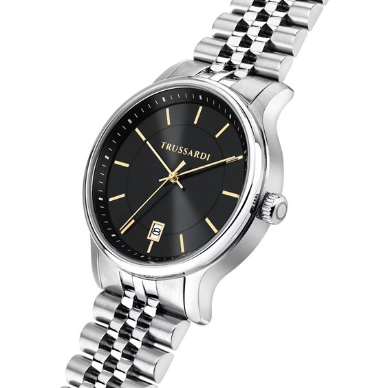 OROLOGIO TRUSSARDI T-INEDITO - R2453174004 - Genere: Uomo, Materiale e finitura cassa: Acciaio, Misura cassa: 39.00mm, Spessore cassa: 9.90mm, Finitura cassa: Lucido, Colore cassa: Silver, Vetro: Vetro minerale, Materiale cinturino: Acciaio, Colore cinturino: Silver, Chiusura: Fibbia deployante con pulsanti, Movimento: Quarzo, Water resistant: 5 atm, Garanzia: Ufficiale 2 anni Trussardi, Confezione: Originale Trussardi