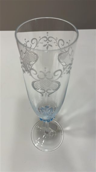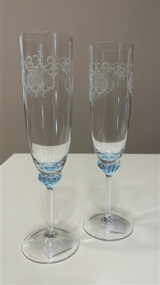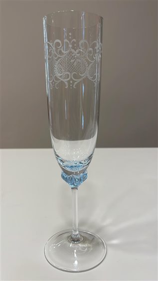 6 FLUTE LUMIC IN CRISTALLO CON DECORI INCISI A MANO BIANCHI E AZZURI