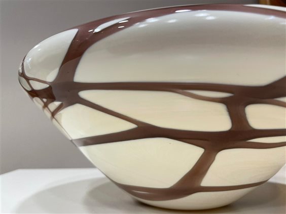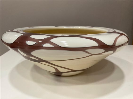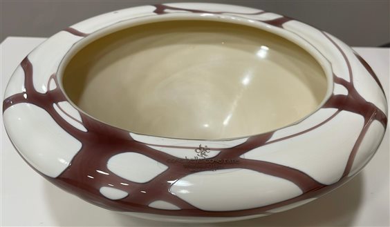 CENTRO TAVOLA 'COSE BELLE COSE RARE' IN VETRO DI MURANO AVORIO CON DECORO RAGNATELA AMETISTA. Cose Belle Cose Rare è un azienda che produce da 25 anni, articoli in vetro soffiato secondo l’antica tradizione artigianale del vetro di Murano. Ogni giorno i suoi esperti “maestri vetrai” con passione creano oggetti unici ed esclusivi. Le collezioni Cose Belle Cose Rare sono caratterizzate da uno stile inconfondibile, uniche nel loro genere. Preziosi oggetti e complementi d’arredo in grado di valorizzare e dare un tocco di classe ad un ambiente, grazie ad un oggetto unico e personale.