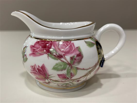 LATTIERA IN MINIATURA AYNSELY da collezione in Porcellana Limoges France bianca con decori floreali con rose fucsia e bianche e bordi in oro