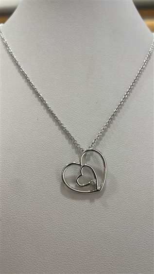 COLLANA FIORELLA IN ORO BIANCO KT 18 CON PENDENTE CUORE IMPREZZIOSITO DA UN DIAMANTE TAGLIO BRILLANTE KT 0.02.