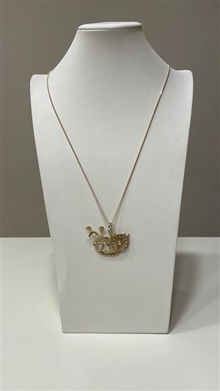COLLANA TERRE DI SICILIA IN ARGENTO PLACCATO ORO GIALLO CON PENDENTE CARRETTO CON CAVALLO, CON RUOTA GIREVOLE CON ZIRCONI BLU.