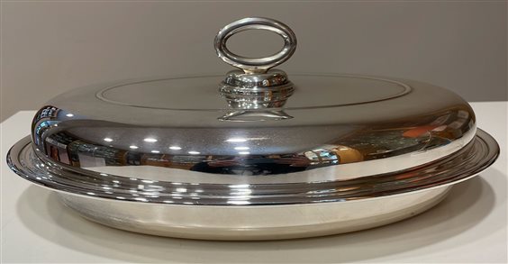 PREGIATO PEZZO D'ARGENTERIA. L'ALTA QUALITA' DEI MATERIALI E DELLA LAVORAZIONE SONO GARANTITI DAI MARCHI LEGALI IMPRESSI SUL PEZZO. PIROFILA IN ARGENTO MASSICCIO 800, GR 1080, CON COPERCHIO E ALL'INTERNO UN TEGAME DA FORNO DALLA MISURA DI 30X21CM IN VETRO TEMPERATO PIREX.