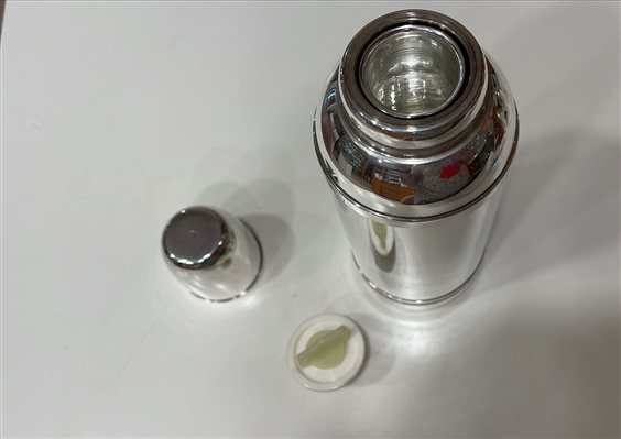PREGIATO PEZZO D'ARGENTERIA. L'ALTA QUALITA' DEI MATERIALI E DELLA LAVORAZIONE SONO GARANTITI DAI MARCHI LEGALI IMPRESSI SUL PEZZO. TERMOS RIVESTITO IN ARGENTO 925, DALLA SUPERFICIE LISCIA E LUCIDA.