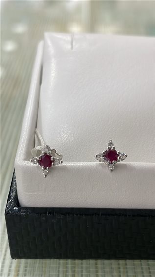ORECCHINI OCEANIA IN ORO BIANCO KT 18 CON RUBINI KT 0.44 DIMENSIONE 3,5mm E BRILLANTI KT 0.08 GVS. IL GIOIELLO VERRA' SPEDITO CON SCATOLA ORIGINALE E CERTIFICATO DI GARANZIA INTERNZAIONALE.
