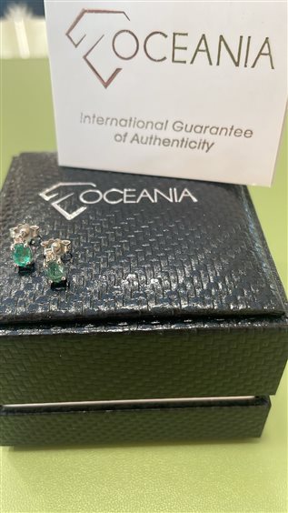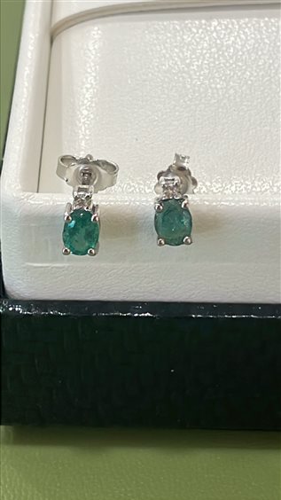 ORECCHINI OCEANIA IN ORO BIANCO KT 18 CON SMERALDO KT 0.53 E BRILLANTE KT 0.03 GVS.
