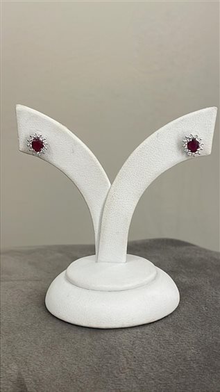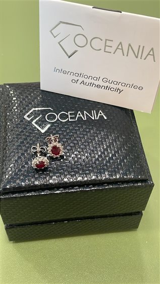 ORECCHINI OCEANIA IN ORO BIANCO KT 18 CON RUBINO CENTRALE KT 0.84 E DIAMANTI TAGLIO BRILLANTE KT 0.23 GVS.