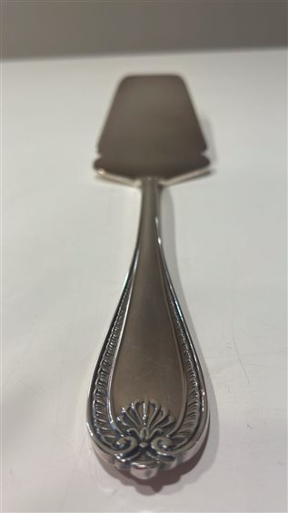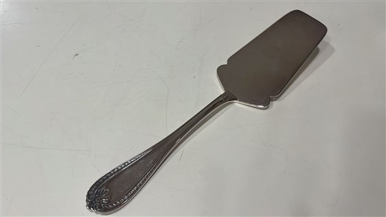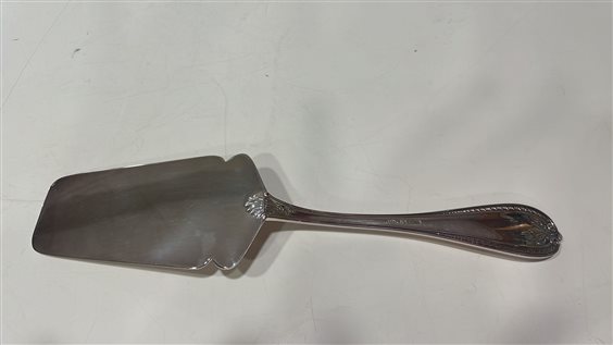 PREGIATO PEZZO D'ARGENTERIA DELL'ARTIGIANATO PALERMITANO MARCHIO STANCAMPIANO DI ALTA QUALITA' DEI MATERIALI E DELLA LAVORAZIONE SONO GARANTITI DAI MARCHI LEGALI IMPRESSI SUL PEZZO. PALA TORTA IN ARGENTO 800 STILE IMPERO, GR 160.