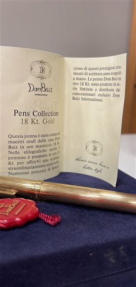 PENNA DOM BAIZ IN ORO GIALLO KT 18, STILOGRAFICA. IDEALE REGALO PER LA SUA LINEA ELEGANTE E PRESTIGIOSA AZIERNSA DI FAMA INTERNAZIONALE.