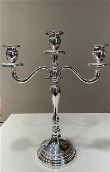 PREGIATO PEZZO D'ARGENTERIA DELL'ARTIGIANATO PALERMITANO. L'ALTA QUALITA' DEI MATERIALI E DELLA LAVORAZIONE SONO GARANTITI DAI MARCHI LEGALI IMPRESSI SUL PEZZO. CANDELIERE A 3 FIAMME IN ARGENTO MASSICCIO 800, STILE IMPERO.