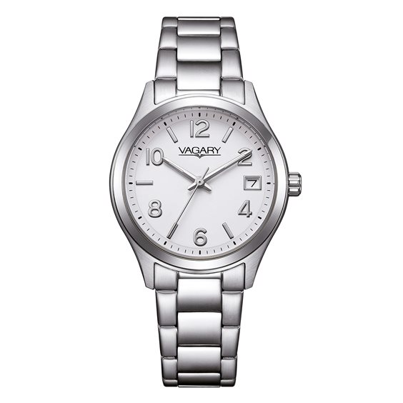 Prodotto: orologio al quarzo Vagary By Citizen donna Timeless IB9-611-11 Orologio da donna di Vagary della collezione Timeless. Orologio solo tempo con cassa in acciaio diametro cassa 32 mm. Il quadrante bianco con indici applicati e numeri arabi.Bracciale in acciaio con chiusura a pulsante con movimento al quarzo Citizen con vetro minerale. Datario: si. La resistenza all'acqua è di:5 ATM. La referenza è IB9-611-11 Questo articolo verrà spedito con Scatola Originale Vagary By Citizen
