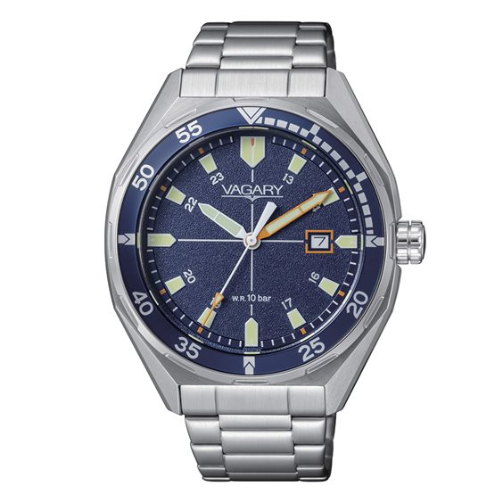 Prodotto: orologio al quarzo Vagary By Citizen uomo Aqua39 IB9-417-71 Orologio Vagary da uomo della collezione Aqua39 2024. Orologio solo tempo con cassa in acciao spazzolato con lunetta blue, diametro cassa 41 mm, quadrante blue opaco con indici e lancette con trattamento luminous e bracciale in acciaio con chiusura a pulsante. Resistenza all'acqua pari a 10ATM, movimento al quarzo citizen e vetro minerale. La referenza è: IB9-417-71 Questo articolo verrà spedito con Scatola Originale Vagary By Citizen