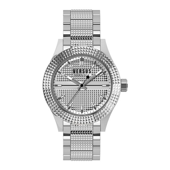 Orologio con movimento al quarzo. Cassa in acciaio, diametro 38 mm. Fondo in acciaio serrato a pressione. Vetro minerale. Corona di regolazione in acciaio serrata a pressione. Quadrante silver con ghiera silver, indici a barre. Cinturino in acciaio con chiusura deployante a 2 pulsanti laterali Water Resistant 5 Atm.