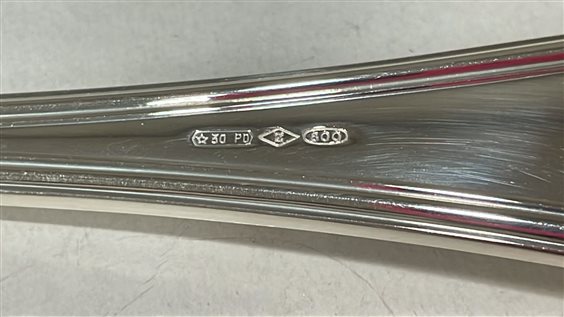 PALA GELATO DAL MARCHIO ZARAMELLA IN ARGENTO 800, PESO 156 GR. PEZZO UNICO PER LA SUA LINEA SEMPLICE ED ELEGANTE DALLO STILE INGLESE.