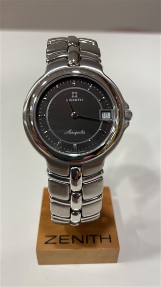 OROLOGIO ZENITH COLLEZIONE ACROPOLIS CASSA E CINTURINO IN ACCIAIO MOVIMENTO A QUARZO SOLO TEMPO FONDO NERO CHIUSURA DEPLOYANTE.